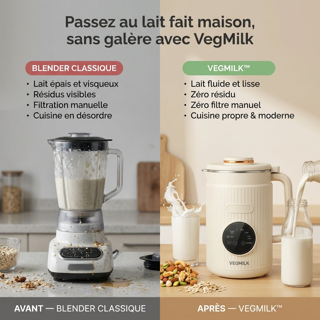 - VegMilk est conçu pour préparer aussi bien les laits végétaux (amande, avoine, soja, noisette, coco, graines…) que le lait classique. Il permet d’obtenir une texture lisse, sans grumeaux.